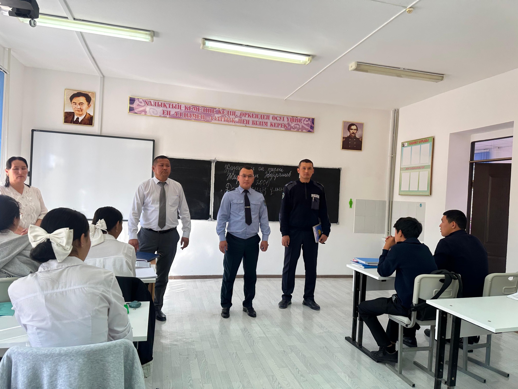 Ыбырай Алтынсарин атындағы №204 орта мектепте Қазалы аудандық полиция бөлімінің учаскелік полиция инспекторлары, оның ішінде Жергілікті полиция қызметі тобының инспекторы – полиция лейтенанты Казбеков Алмат Наринбаевич және жедел уәкіл – полиция майоры Баймаханов Мураттың қатысуымен 8–10 сынып оқушылары арасында есірткі заттарының зияны мен нашақорлықтың алдын алу мақсатында түсіндірме жұмыстары жүргізілді.
